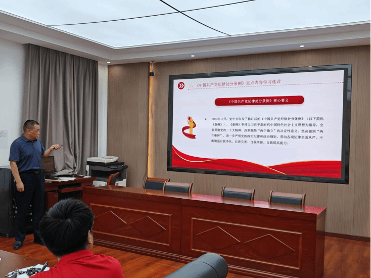 课上,,,,,,,刘卫民从“开展党纪学习教育的意义”“纪律处分条例重点内容的学习”以及“让遵规守纪成为自觉行动”三个方面来举行教学。。。。。。
