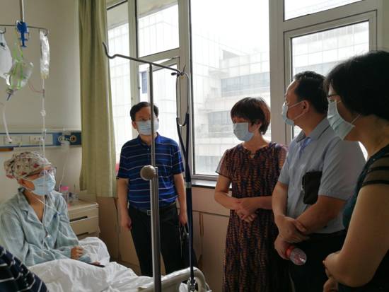 (通讯员:延飞)2019年6月28日上午,,,,, ,校友事情随处长邓新洲,,,,, ,公海555000jc线路检测中心官网党委书记舒先林、组织员吴秋凤、研究生导师周智年教授、办公室主任刘会、研究生事情办公室主任延飞一行六人赴协和医院探望了正在住院治疗的2015届校友朱文娟,,,,, ,向她转交了学院师生及部分校友的捐钱,,,,, ,转达了各人对她的体贴和关爱。。 。。。。。