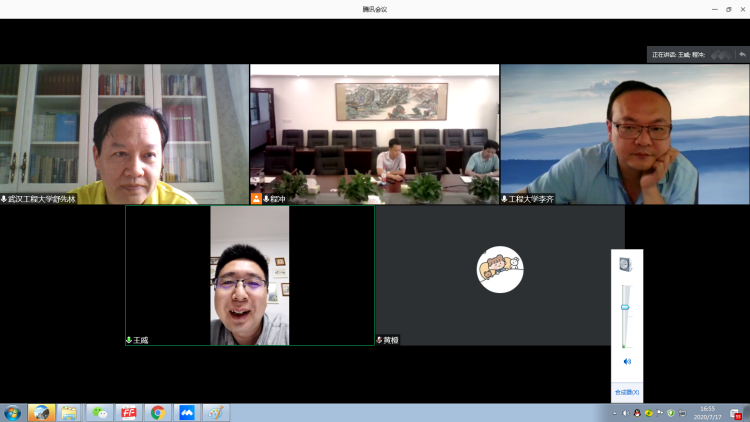 7月17日下昼 ,,,,,,,湖北省委宣传部讲师团“理论热门面扑面”树模点建设专家组单位武汉工程大学团结鄂州市庙鹅岭股份经济相助社召开了一次云视频专题调研座谈会。。。。 。。。树模点建设专家组组长、我院党委书记舒先林教授 ,,,,,,,青年西席李齐博士 ,,,,,,,王威博士以及18级硕士研究生黄橙 ,,,,,,,以及庙鹅岭股份经济相助社党委书记、董事长王安平 ,,,,,,,党委副书记、副董事长邵国顺和党委委员、董事邵超等加入了本次视频座谈会。。。。 。。。座谈会由王威博士主持。。。。 。。。