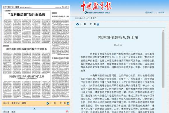 (通讯员 金诗灿)5月14日出书的《中国教育报》刊发了我校公海555000jc线路检测中心官网西席陈永贵博士的文章《精耕细作西席从教土壤》。。。。。。。文章刊发后,,,,,,被人民网、灼烁网、中国教育新闻网等多家主流网站转载,,,,,,灼烁网·理论动态栏目对该文举行了论点摘编。。。。。。。