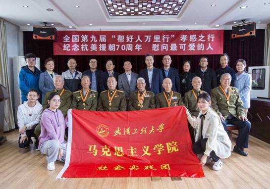 在已往的2020年间,,,,,,10月24日至25日,,,,,,马院党委书记舒先林教授、团委书记蔡明广向导硕士研究生,,,,,,组成社会实践师生团赴孝感加入了天下第九届“帮好人万里行”大型公益运动。。。。。正值重阳佳节和抗美援朝出国作战胜利70周年岁念日这个特殊的日子里,,,,,,“帮好人万里行”湖北孝感之行代表团探望并慰问了祖国最可爱的人——9名曾加入抗美援朝战争的退役老兵:王清珍,,,,,,李国增、夏登明、闫正腾、朱奇才、李天运、王玉生、钟生全、龚晓初。。。。。