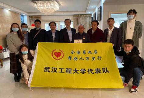 11月19至21日,,,,,,社会实践师生团加入天下第九届“帮好人万里行”大型公益运动。。。。。在为期三天的运动中,,,,,,整体先后奔赴武汉市武昌区十余个老社区、武汉肿瘤医院、武汉长江救援自愿队,,,,,,以及鄂州儿童保健医院、鄂州市中心医院、鄂州市退役武士事务局、城区及华容区等地,,,,,,总行程410公里。。。。。先后对18位抗美援朝老兵、3位长江救援队队员、3名抗战老兵、3名军烈属、2名抗疫英雄,,,,,,共计29人举行慰问,,,,,,揭晓慰问金5.3万元。。。。。