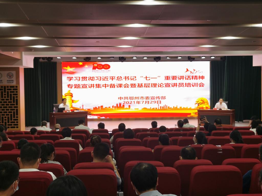 (通讯员王威)7月29日,,,,,省委宣讲团成员、我校公海555000jc线路检测中心官网院长、曹胜亮教授应鄂州市委宣传部约请,,,,,在鄂州市学习贯彻习近平总书记“七一”主要讲话精神专题宣讲集中备课会暨下层理论宣讲员培训会上作树模宣讲。。。。。。。。各区委宣传部认真理论事情的副部长,,,,,葛店开发区、临空经济区党工委分治理论事情的向导、市委宣讲团成员、市级其他宣讲团成员、各区县宣讲团成员共120人加入此次集中备课会。。。。。。。。鄂州市委宣传部副部长万春风主持备课会。。。。。。。。