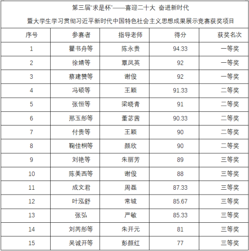 最后经由评委先生们的评选打分,,, ,,,,由主持人王梦涵宣布了角逐获奖名单,,, ,,,,本次决赛共评选出一等奖3名,,, ,,,,二等奖5名,,, ,,,,三等奖7名。。。。。颁奖竣事后,,, ,,,,评委先生与获奖同砚合影留念,,, ,,,,宣告了“求是杯”决赛圆满竣事。。。。。(审稿 常城)