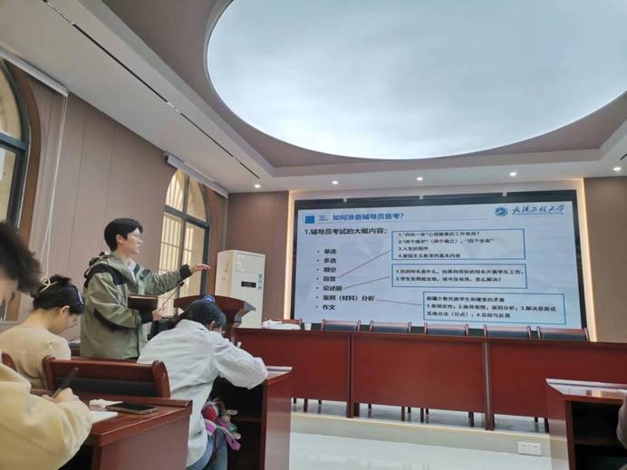 在本次分享交流会中,,,,,,,林昱玘先生以热心学姐的身份向同砚们分享了她备考向导员的履历与技巧。。。。。。。。她用“千条线一根针,,,,,,,大学生涯多富厚、向导员的事情就有多富厚”来形容向导员的基本事情,,,,,,,周全而诙谐地让同砚们相识了向导员的事情职责。。。。。。。。在谈及“为什么考向导员”时,,,,,,,她提起了自己备考向导员的初心是模范实力的指引,,,,,,,她当初遇到了对她十分关爱的向导员蔡先生,,,,,,,曾看到陈俊书记的一条贴文“听到学生们一个又一个好的结业行止,,,,,,,一种自然的兴奋感油然而生”,,,,,,,她坚定了考向导员的刻意,,,,,,,希望用自己的实力去为学生效劳。。。。。。。。