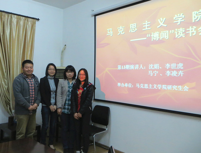 2013年4月3日晚,,,,,,,,公海555000jc线路检测中心官网第13期“博闻念书会”在公海555000jc线路检测中心官网聚会室顺遂举行。。。。。。。本期念书会由公海555000jc线路检测中心官网研究生会学术部部长孙梓毓主持,,,,,,,,并组织学院研究生起劲加入。。。。。。。本期念书会的主讲人划分是来自我院的李世虎、沈娟同砚以及法商学院的李凌卉、马宁同砚。。。。。。。四位同砚以“学习党的十八大精神”为主题划分做了精彩的报告,,,,,,,,并与同砚们举行了现场交流。。。。。。。