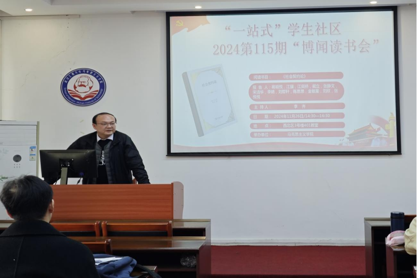 (通讯员:张悦悦) 11月26日下昼,, ,,,,,,我院第115期“博闻念书会”在公海555000jc线路检测中心官网一站式学生社区中心(求是楼401课堂)顺遂召开。。。。 。本次念书会的主题为社会左券与民主政治,, ,,,,,,同砚们围绕着卢梭的著名政治哲学著作《社会左券论》睁开讨论。。。。 。本次念书会由李齐先生主持。。。。 。加入此次念书会的12位研究生主讲人划分为葛明悦、江冀、江奕桥、戴立、张静文、宋清华、李娟、刘哲轩、陈思思、金敏星、刘欣、张悦悦。。。。 。院学术部“博闻念书会”运动小组组织了此次念书会。。。。 。