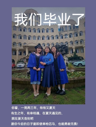 “做学问要扎根生涯土地,,,,,,,,罗致生涯养分。。。。。。。。”这是她常对自己学生说的一句话。。。。。。。。在她看来,,,,,,,,硕士生导师不但是学术上的引路人,,,,,,,,也应是生涯中的帮扶者。。。。。。。。面临即将结业的研三同砚经常向她倾吐写论文和找事情的懊恼,,,,,,,,王颖先生总是愿意谛听,,,,,,,,并分享自身履历,,,,,,,,耐心宽慰与启发她们。。。。。。。。2012年以来,,,,,,,,王颖先生共指导了 15 名硕士研究生,,,,,,,,其中 1 名研究生的结业论文荣获校级优异硕士学位论文,,,,,,,,2 名研究生获得校级优异研究生声誉称呼,,,,,,,,2 名研究生在北大焦点期刊揭晓论文,,,,,,,,1 名结业生留校任教,,,,,,,,1 名结业生考取湖北省选调生。。。。。。。。同砚们感言:“王先生不但是学术导师,,,,,,,,更是人生引路人,,,,,,,,她的眷注让我们在修业路上倍感温暖与实力。。。。。。。。”
