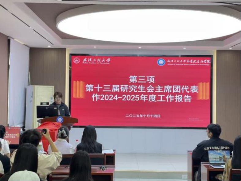 第十三届研究生会主席团代表李盈萱作事情报告,,,,,,,,系统回首了已往一年研会在头脑引领、学术立异、文体运动、权益效劳等方面的事情效果。。。。 。。报告指出,,,,,,,,研会通过举行“红心向党”红色宣讲团、“乡音课堂”进下层等品牌运动,,,,,,,,推动理论学习与实践育人深度融合;;;;;;;依托“求是论坛”“博闻念书会”等平台,,,,,,,,营造浓重学术气氛,,,,,,,,助力研究生科研能力提升。。。。 。。