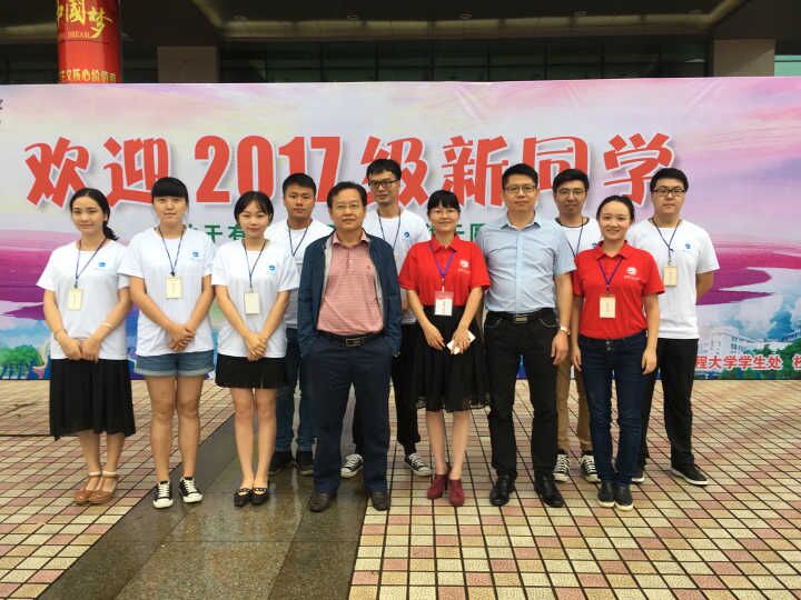9月6日早晨,,,,,,,在向导员张雪姣先生的指导下,,,,,,,研究生会干部在大礼堂前有条不紊地睁开了迎新事情,,,,,,,为到校新生治理相关入学手续。。。。。。。学校党委书记程幼金、校长王存文等校向导及职能部分向导一行来到马克思主义迎新现场检查迎新事情、探望新生。。。。。。。我院院向导亲临现场指导事情,,,,,,,并与前来报到的新同砚举行了亲热的交流。。。。。。。